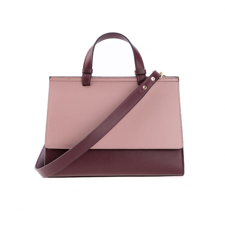 กระเป๋าถือสตรีสีตัดกันมีซิปและบานพับ