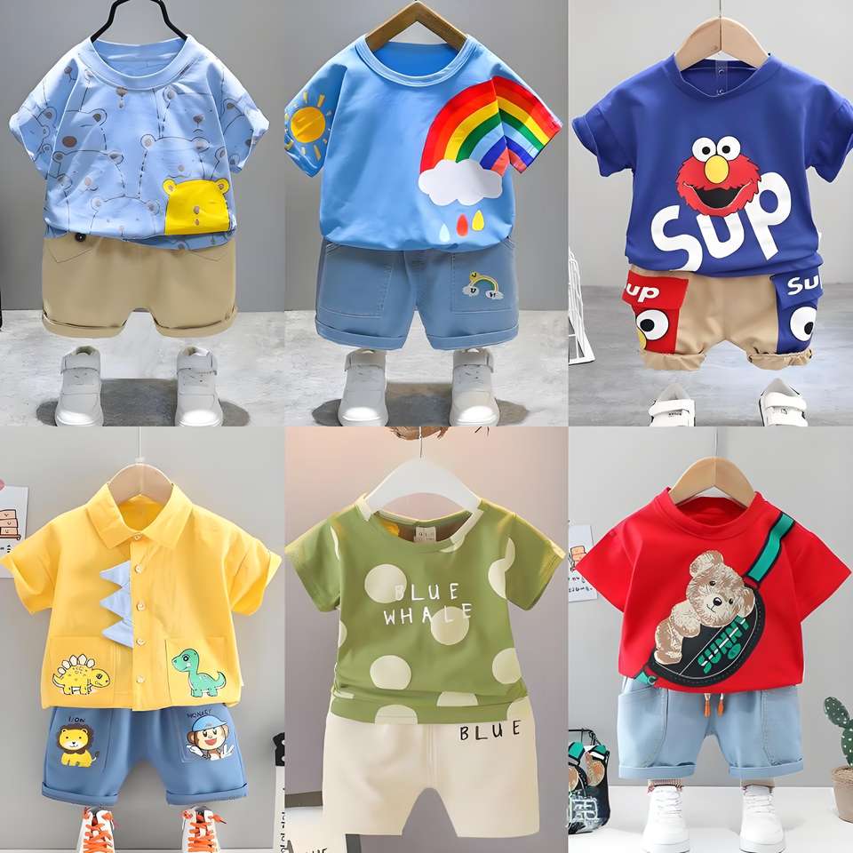 เสื้อผ้าเด็กแฟชั่นใหม่ขายส่ง แบรนด์แท้ ชุดเสื้อผ้าฝ้ายสำหรับเด็กผู้ชายและเด็กผู้หญิง ชุดฤดูใบไม้ผลิ ชุดเดรส กางเกงขาสั้น ชุดรวมหลายแบบ กวางตุ้ง TZ-029