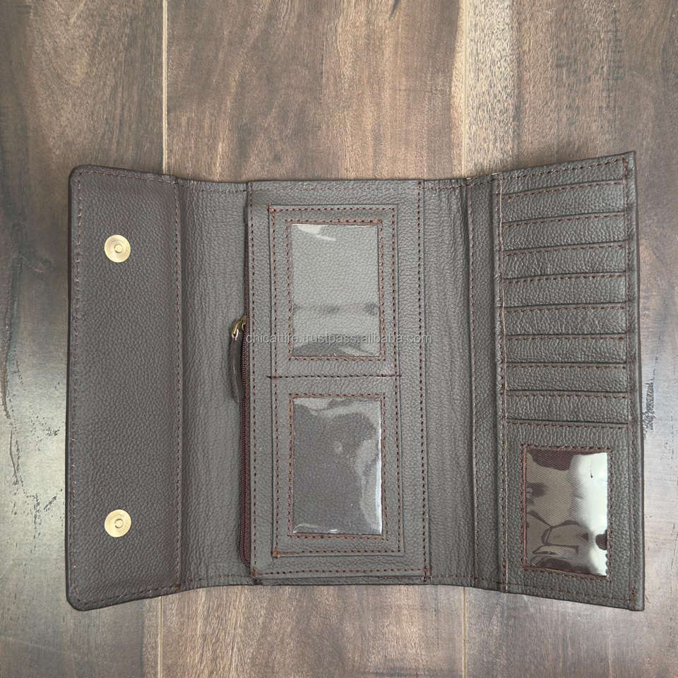 ชื่อผลิตภัณฑ์:กระเป๋าสตางค์พับสามทบหนังวัวด้วยมือ