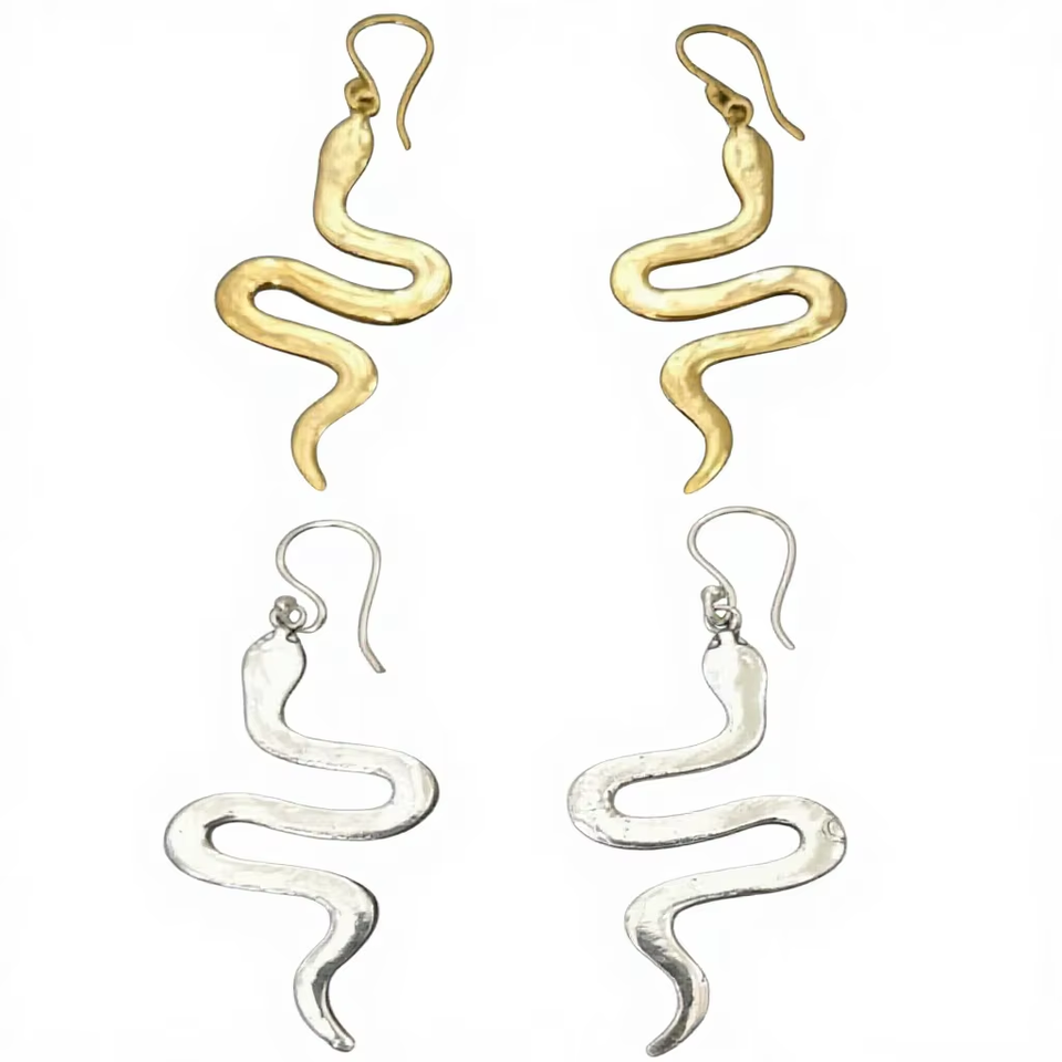ต่างหูห่วงทองเหลืองลายงูแบบขายส่ง สีทอง สไตล์โบฮีเมียน ต่างหูแบบห้อยเกลียวสำหรับผู้หญิง