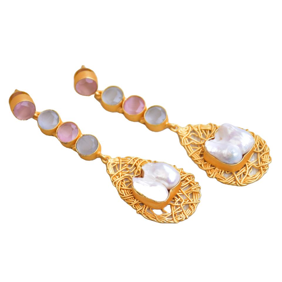 ต่างหูทองเหลืองแบบขายส่ง ประดับมุกและหินกึ่งมีค่าธรรมชาติ ดีไซน์โบโฮชิค งานทองเหลืองโบราณ คุณภาพสูง