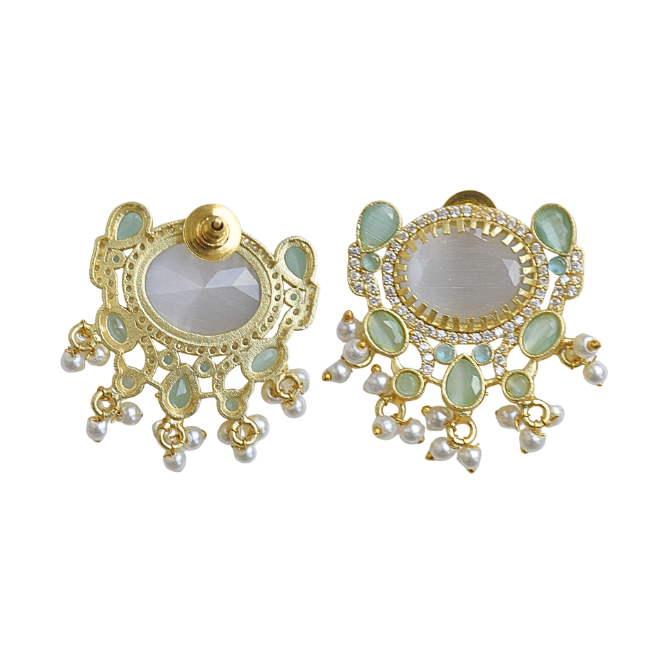 ต่างหูทองเหลืองขายส่ง ประดับเพชรซิคอน ไข่มุกน้ำจืดแท้ ผิวทองเหลืองซาติน ดีไซน์ทันสมัย ขายส่งแฟชั่น