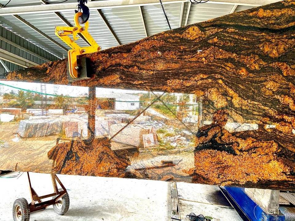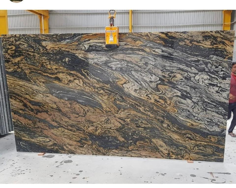 แผ่นหินแกรนิตสีทองแบบฟิวชั่นสีดำสไตล์บราซิลสำหรับตกแต่งผนัง