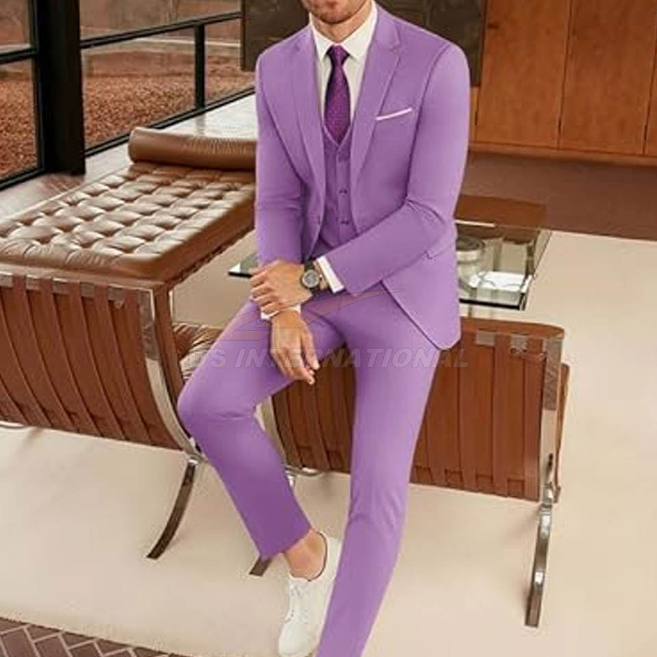 ชุดสูท3ชิ้นระบายอากาศได้ดีสำหรับผู้ชายเสื้อเบลเซอร์เข้ารูปและกางเกงผ้ายืดน้ำหนักเบา