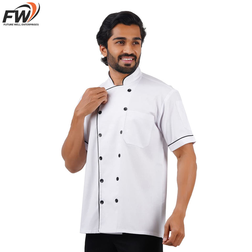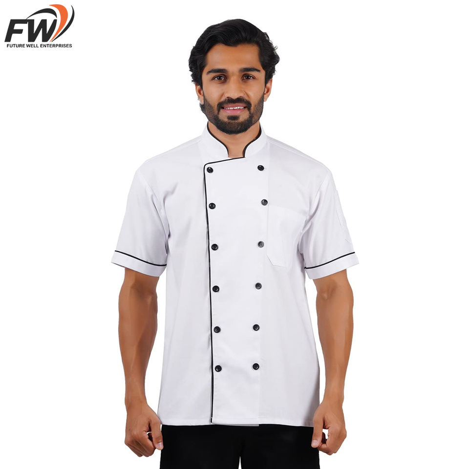 เสื้อเชฟขายส่ง ระบายอากาศได้ดี สกรีนโลโก้ได้ตามต้องการ สีขาวดำ สำหรับผู้ชาย ผู้หญิง ผ้าฝ้ายผสมโพลีเอสเตอร์ ชุดยูนิฟอร์มเชฟสำหรับร้านอาหารและครัว