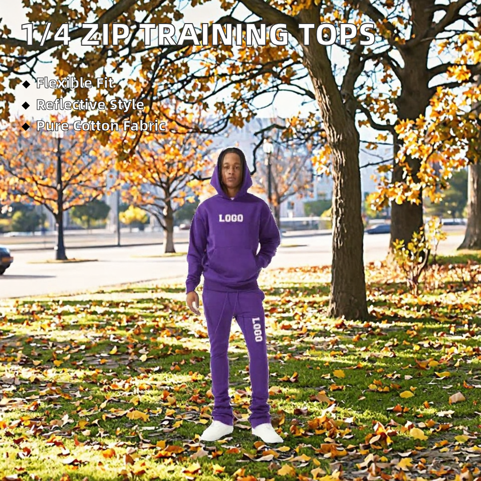เสื้อผ้าผู้ชายสไตล์สตรีทแวร์ขายส่ง ระบายอากาศได้ดี น้ำหนักเบา ไซส์ใหญ่ สำหรับฤดูใบไม้ร่วง ผ้าฝ้าย 100% เสื้อผ้าสำหรับออกกำลังกาย ซิป ¼ ยืดหยุ่น สะท้อนแสง แขนยาว
