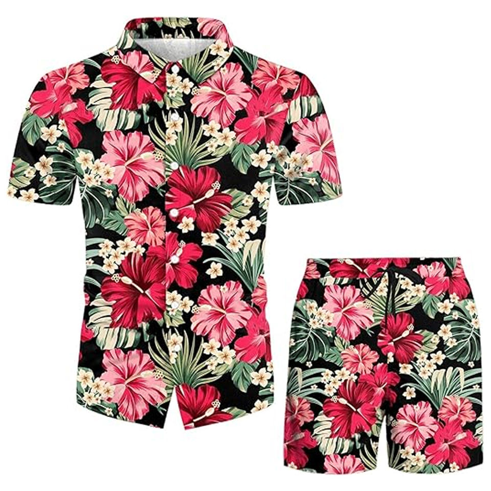 ชุดเสื้อและกางเกงขาสั้นสำหรับผู้ชายชุดเสื้อและกางเกงขาสั้นผ้าโพลีเอสเตอร์พิมพ์ลายได้ตามต้องการ
