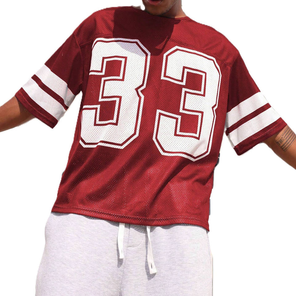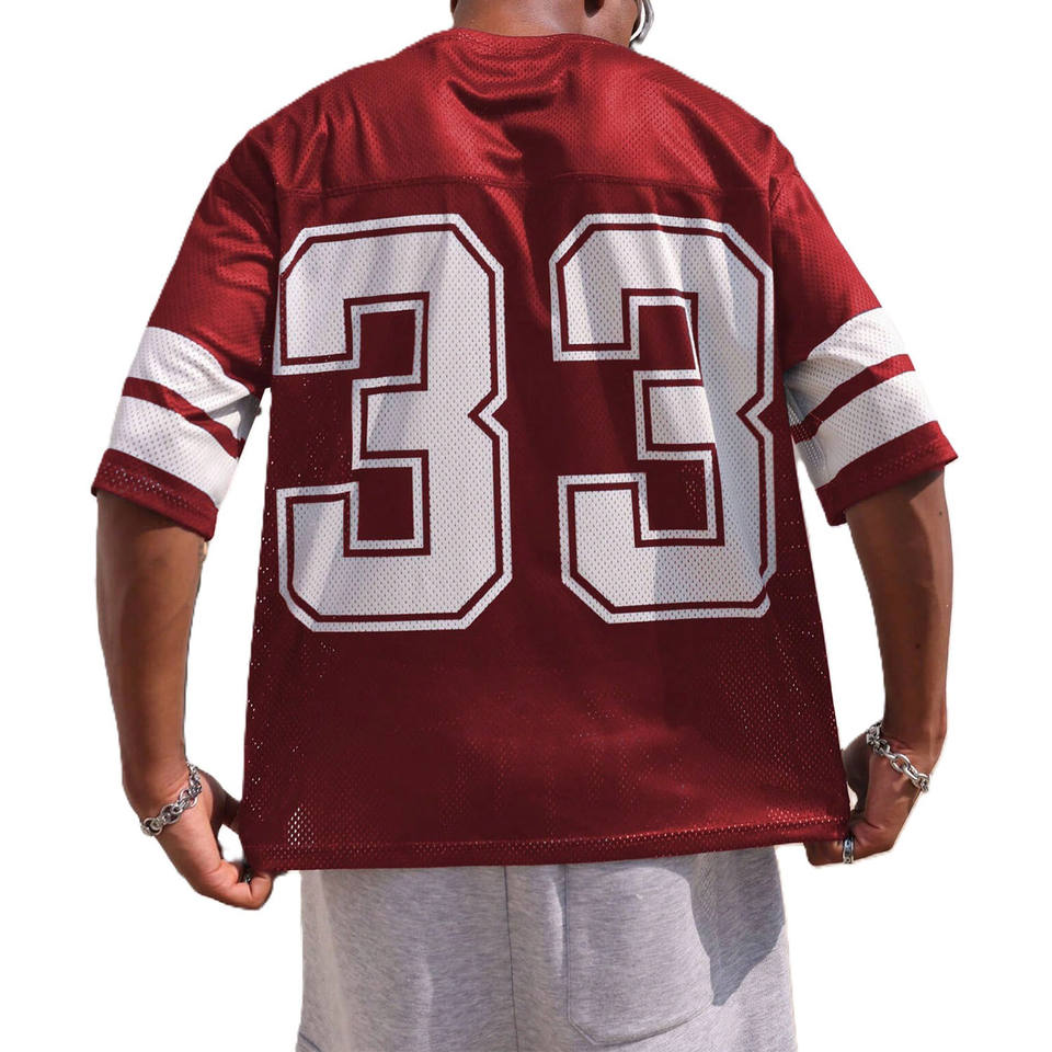 เสื้อฟุตบอลอเมริกันตาข่ายสีแดงระบายอากาศได้ดี ขายส่ง รับสั่งทำหมายเลขทีม ชุดยูนิฟอร์มโพลีเอสเตอร์สำหรับฝึกซ้อม ผู้ผลิต OEM