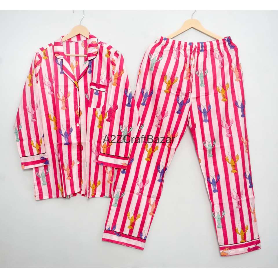 ชุดนอนผู้หญิงผ้าฝ้ายแท้ 100% ระบายอากาศได้ดี ลายพิมพ์ราศีพิจิก ชุดนอนฤดูร้อน กางเกงขายาวถัก เสื้อแขนสั้น