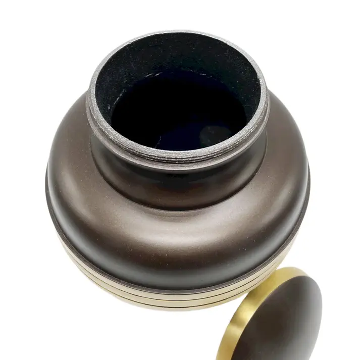โกศบรรจุอัฐิสำหรับผู้ใหญ่ ทำจากโลหะอะลูมิเนียมสีน้ำตาล สำหรับงานศพ งานฌาปนกิจ งานศพตามหลักศาสนา งานศพตามธรรมชาติ ผลิตจำนวนมาก งานฝีมือ ฝาปิดแน่นหนา ขายส่ง
