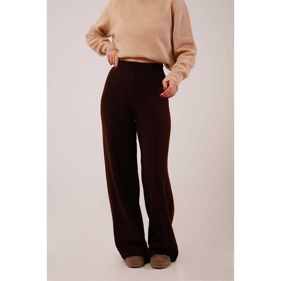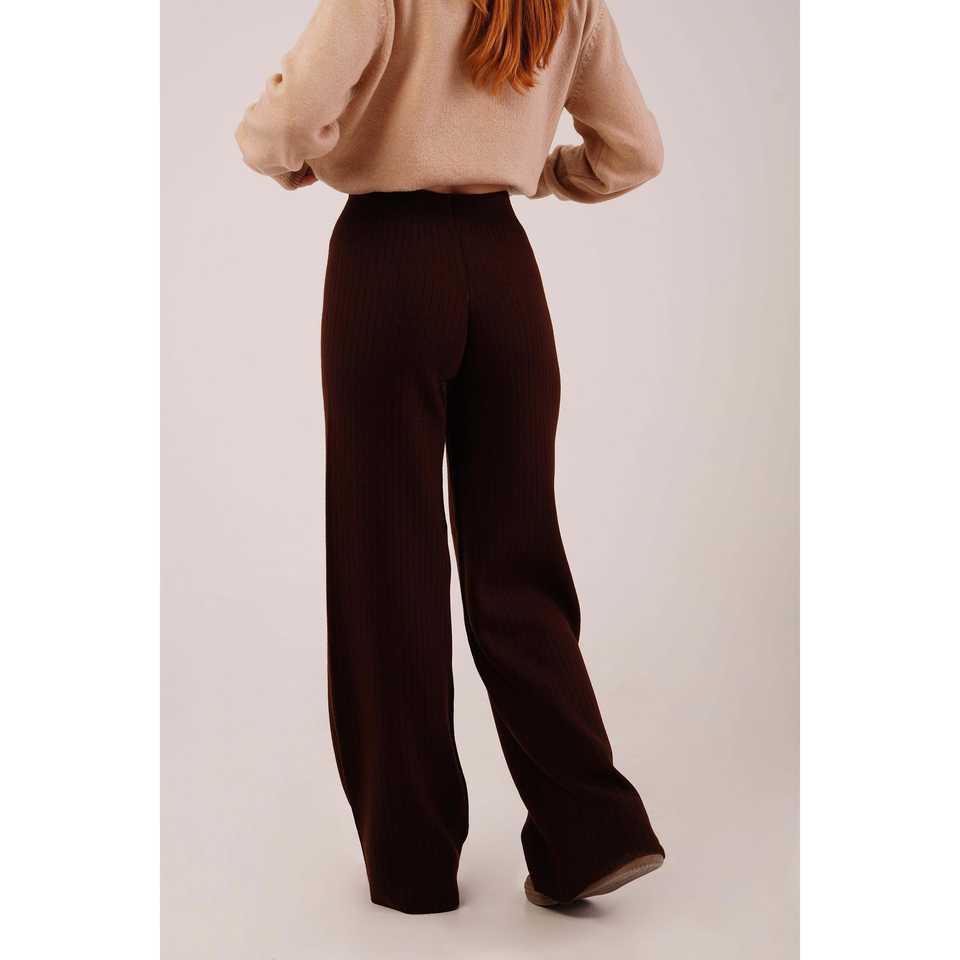 กางเกงขายาวถักสีน้ำตาลขายส่ง เอวผ้ายืดและเอวสูง ระบายอากาศได้ดี ทรงขากว้าง