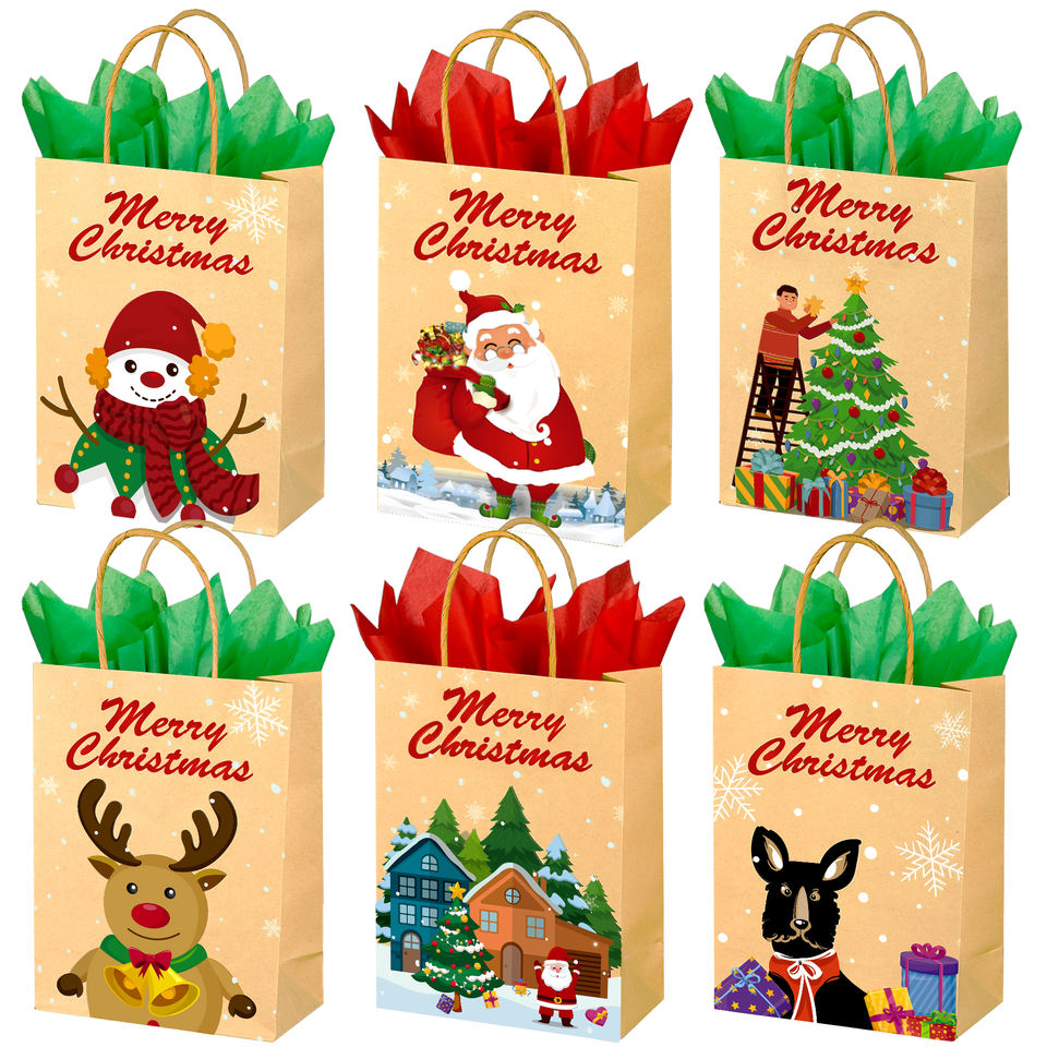 ถุงของขวัญกระดาษคราฟท์สีน้ำตาลขายส่ง พร้อมหูหิ้ว สำหรับใส่ขนม คุกกี้ บรรจุภัณฑ์คริสต์มาส