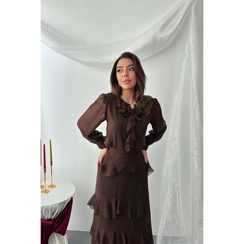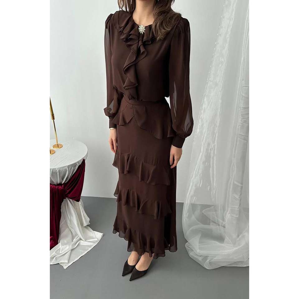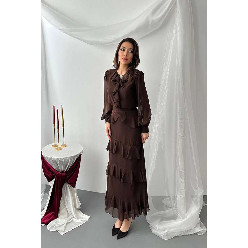 Wholesale Brown Ruffled Chiffon Evening Dresses Set