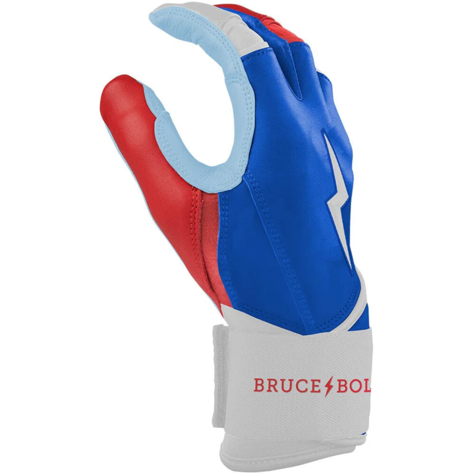 ถุงมือตีเบสบอลสำหรับผู้ใหญ่แบบขายส่ง ยี่ห้อ Bruce Bolt รุ่น Ambidextrous ระบายอากาศได้ดี กันลื่น ทนทาน ผลิตจากหนัง Cabretta คุณภาพพรีเมียม พร้อมแถบยางนีโอพรีน