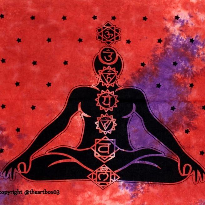 พรมทอแขวนผนังบ้านผ้าคอตตอนแนวโบฮีเมียนลายจักระเจ็ดชิ้น