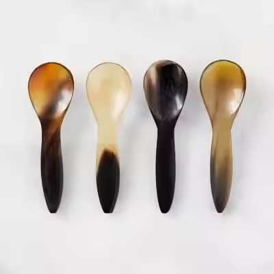 ช้อนเขาควายแบบกระดูกทำมือทำจากจากอินเดียเครื่องครัวแบบมีเอกลักษณ์งานฝีมือรูปพระจันทร์เสี้ยว