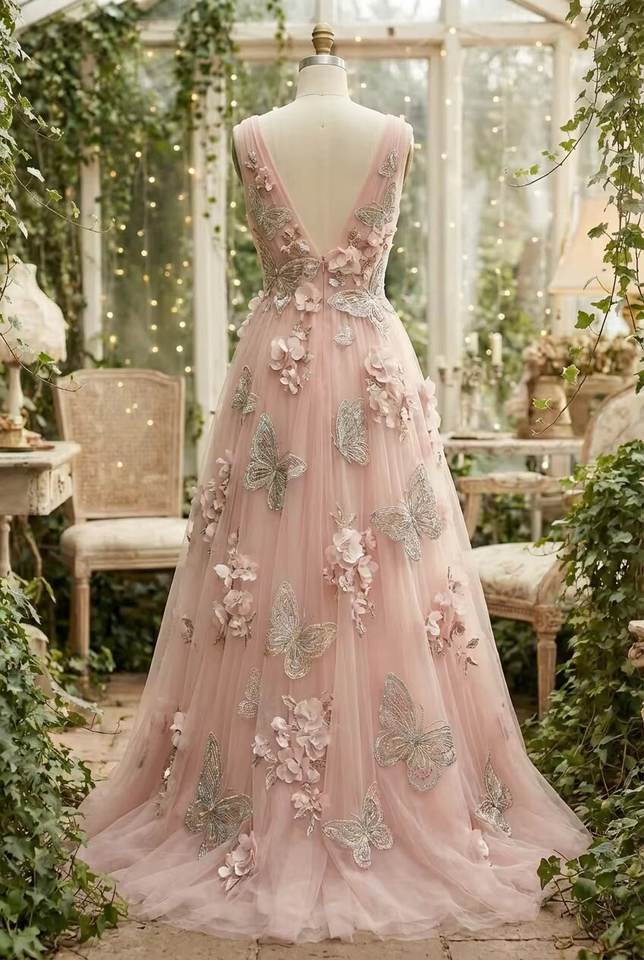 ชุดราตรีผีเสื้อ 3 มิติ ขายส่งจำนวนมาก สีชมพู ผ้าทูลล์ปักลายดอกไม้ ชุดเจ้าสาวสำหรับงานเลี้ยง ผู้ผลิตและผู้จัดจำหน่าย