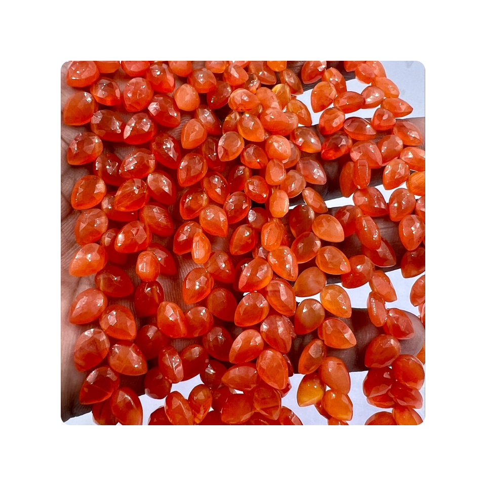ลูกแพร์เจ้าสาวคาร์เนเลียนสีแดงธรรมชาติขนาด8นิ้วสำหรับทำเครื่องประดับหินที่ผ่านการรับรองระดับพรีเมียม