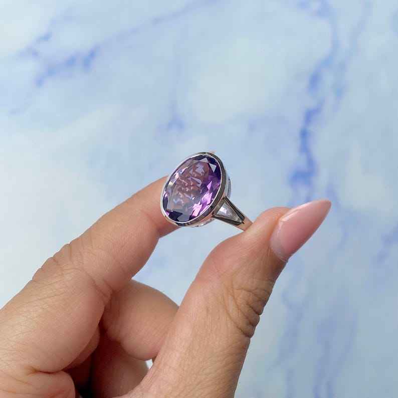 ขายส่ง925จำนวนมากเครื่องประดับเงินสเตอร์ลิงเครื่องประดับผู้หญิงแหวนรูปไข่แหวนอเมทิสต์ธรรมชาติตลอดไป Vermeil