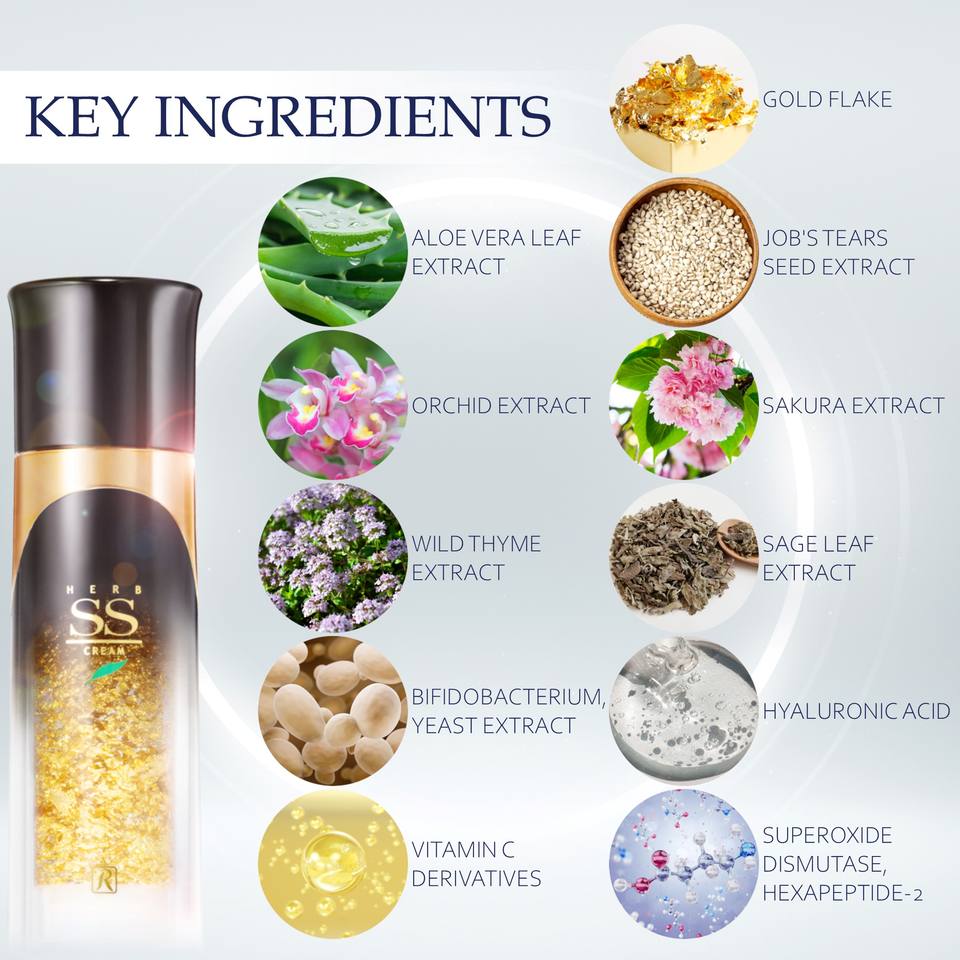 Gold flakes, Plant extracts, Saccharomyces lysate extractmain ingredient