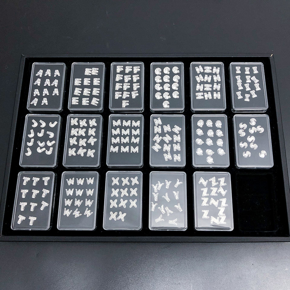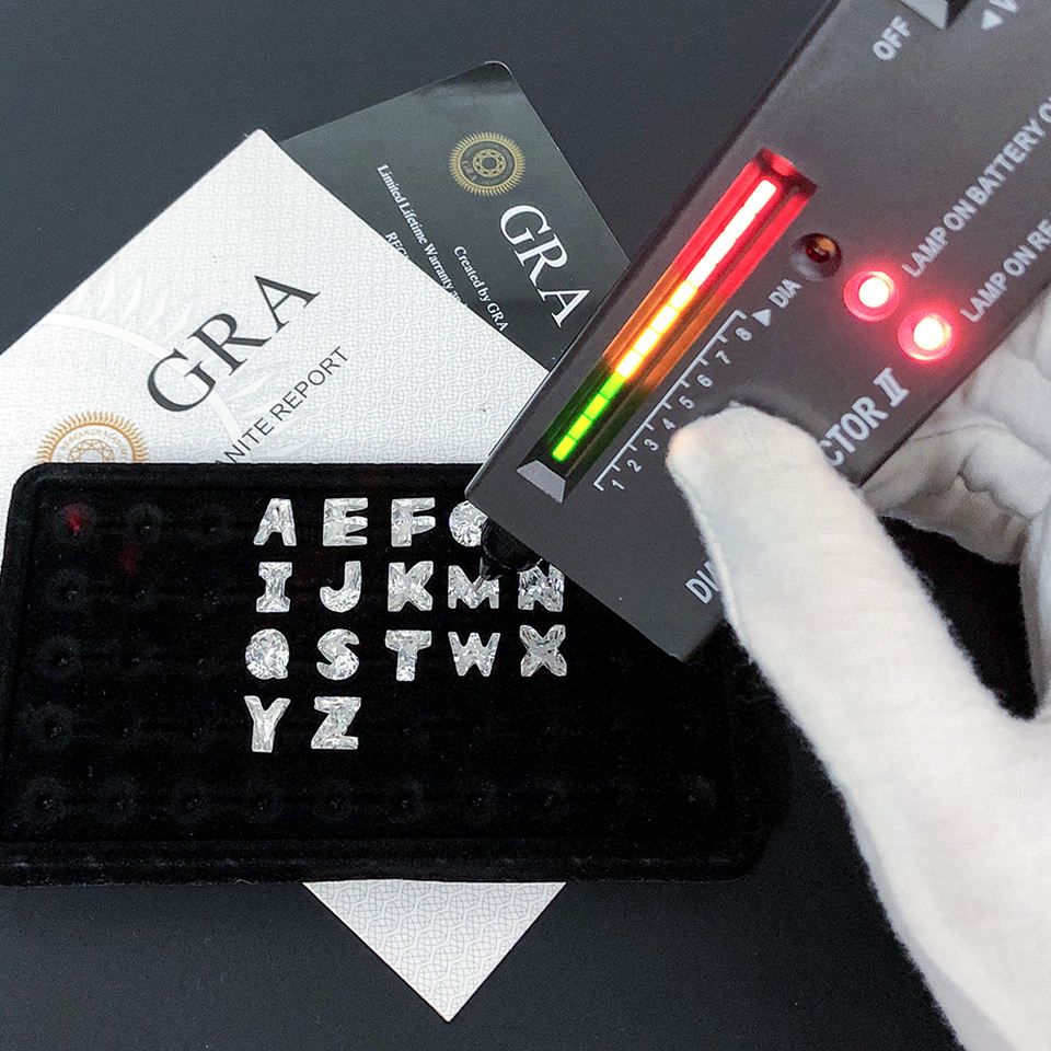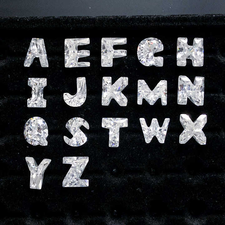 ขายส่งเพชรโมอิสซาไนต์แบบกำหนดเองจำนวนมาก 26 ตัวอักษร A-Z รูปทรงแฟนซีเจียระไนหลังแบบเหลี่ยม สีขาว D ความใส VVS