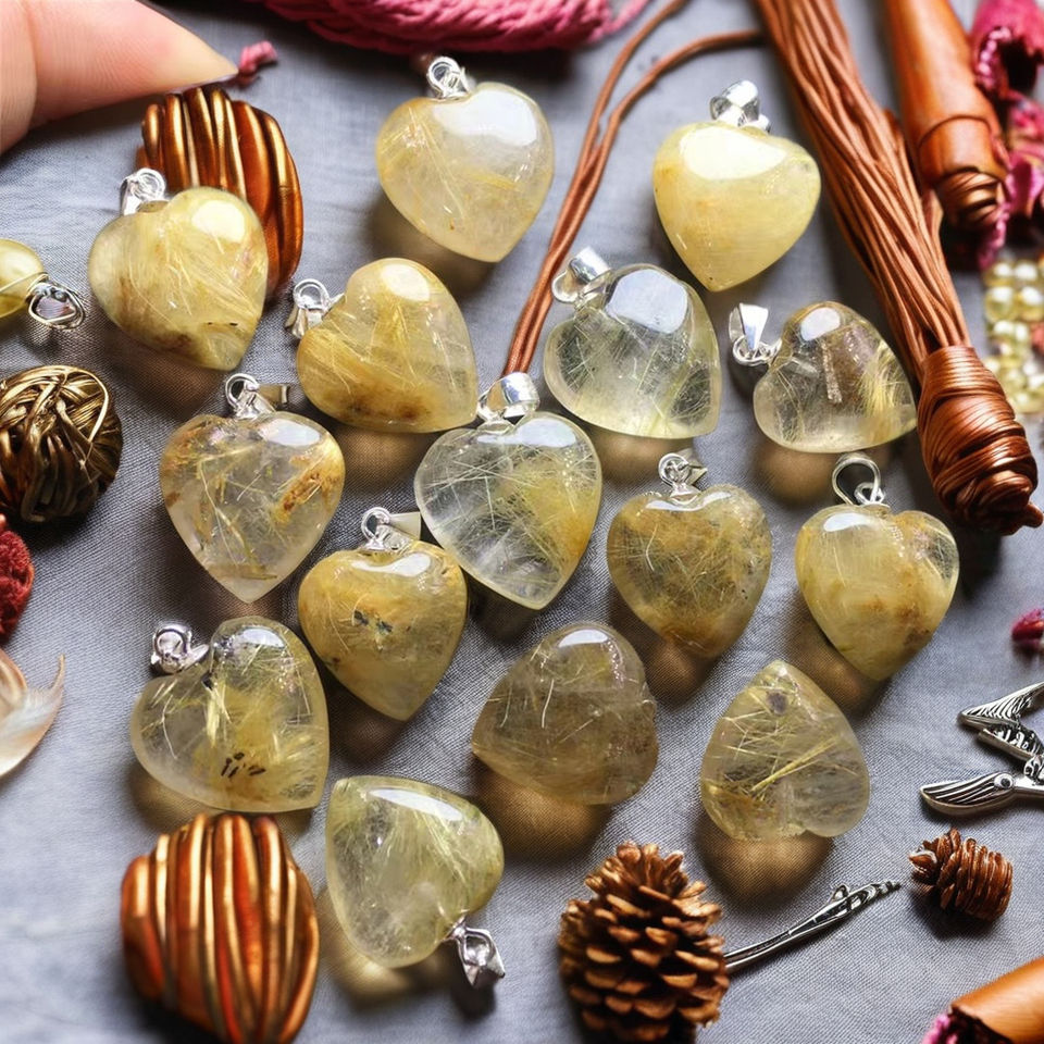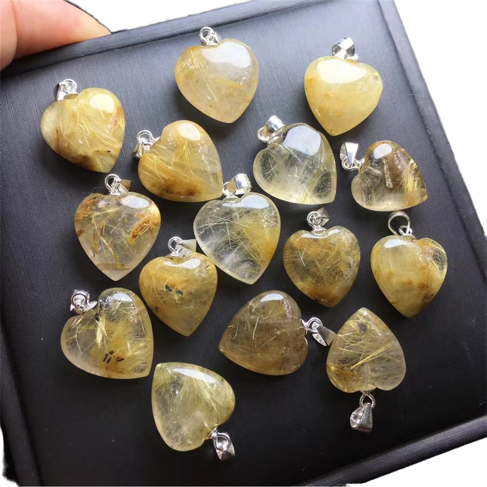 Wholesale Bulk Golden Rutile Quartz Heart Pendant Nature Gemstone Jewelry Crystal Craft for Gifts