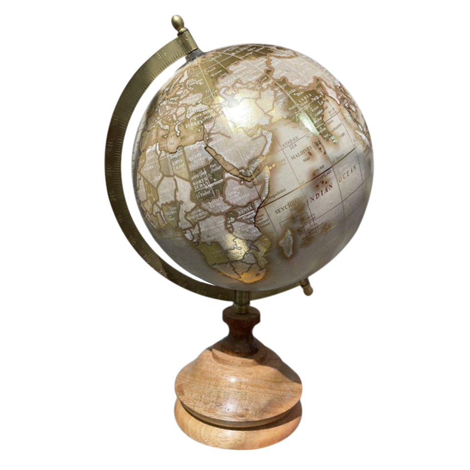 ลูกโลกโลหะสีเขียวมีฐานกลมสำหรับห้องสมุดบนโต๊ะ