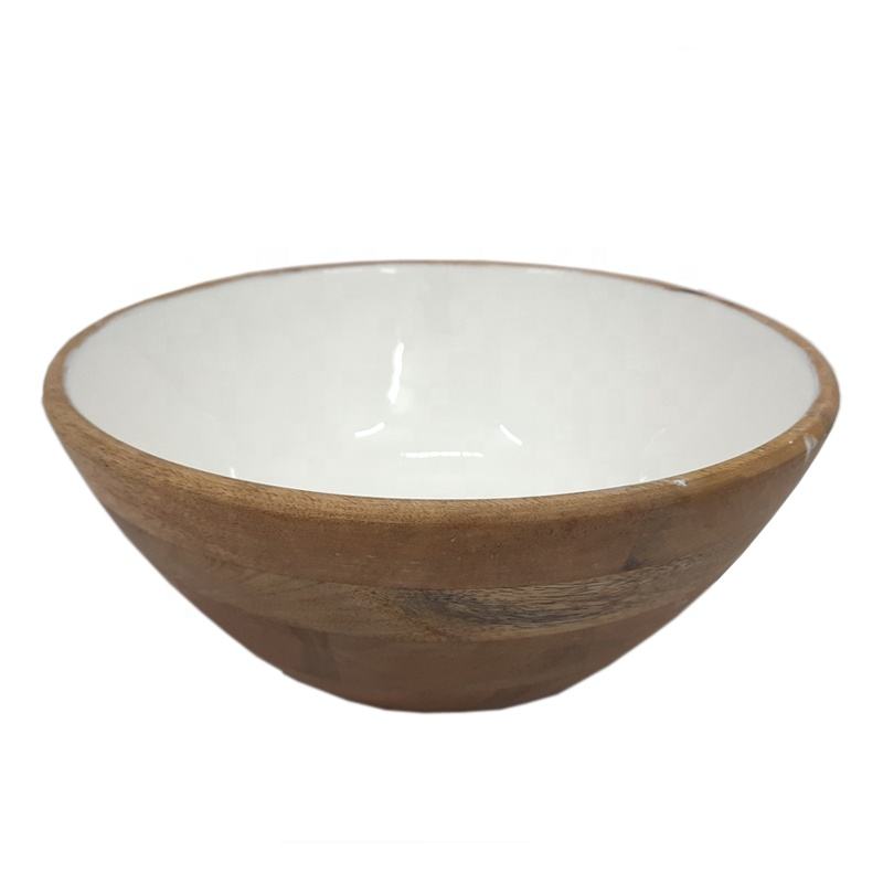 ชามไม้มะม่วงทรงกลมขนาดใหญ่สีขาวเมีน่า สำหรับเสิร์ฟ ผสมสลัด ซุป ทำมือ รับสั่งทำจำนวนมาก