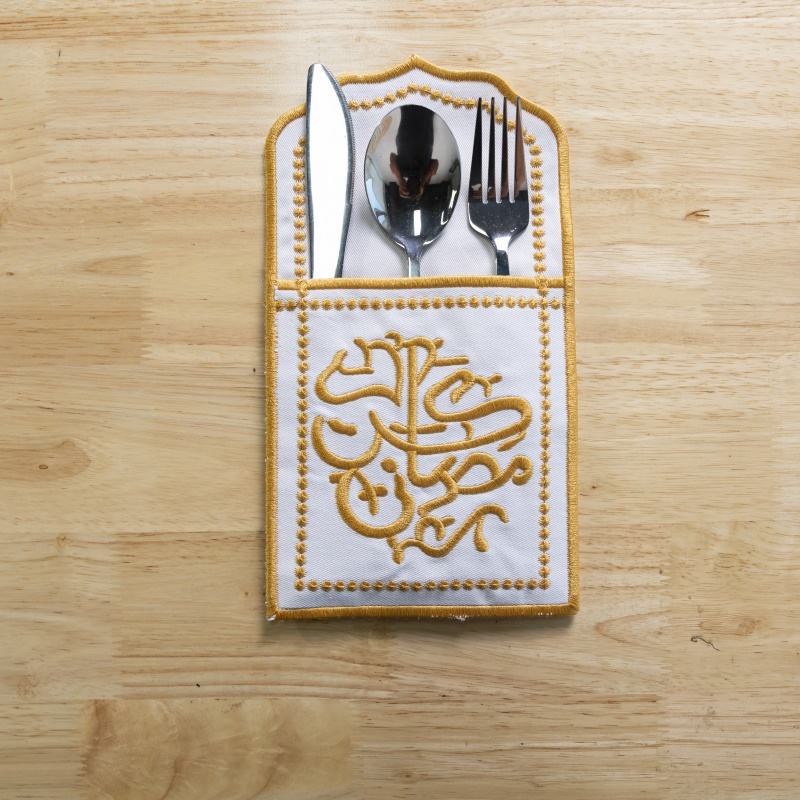 ชุดเครื่องใช้บนโต๊ะอาหารผ้าฝ้ายแท้แบบปักลายมีกระเป๋าสำหรับงานเลี้ยงแต่งงาน