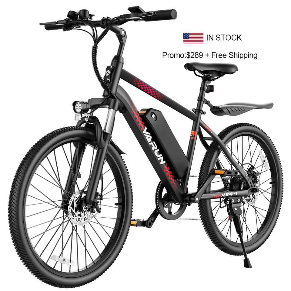 สั่งซื้อจำนวนมากแบบขายส่ง จักรยานเสือภูเขาไฟฟ้า VARUN 24 นิ้ว 350W ระยะทาง 40-50 กม. โครงเหล็กกล้าคาร์บอน สำหรับวัยรุ่น ขับขี่ออฟโรด มีสินค้าในสหรัฐอเมริกา