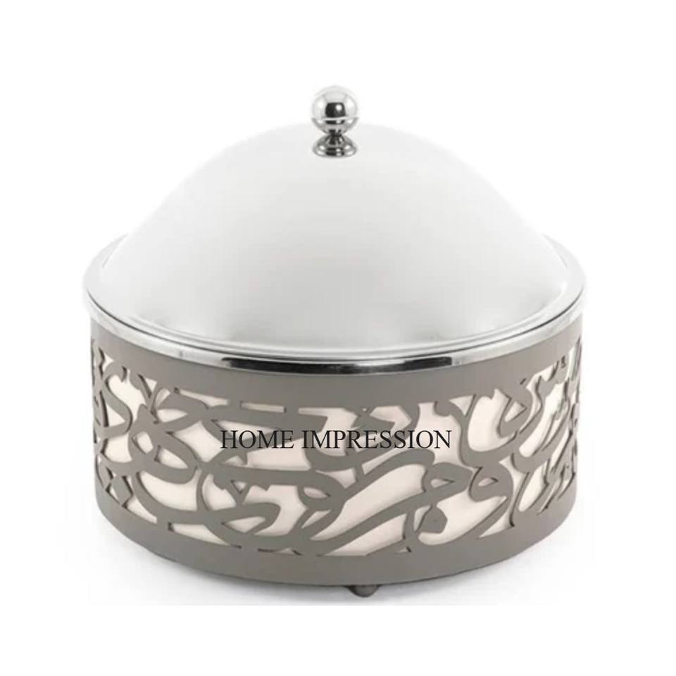 หม้อทรงกลมเคลือบเงาสีเงินพร้อมฝาปิดด้านบนดีไซน์แบบอลูมิเนียมเคลือบเงา