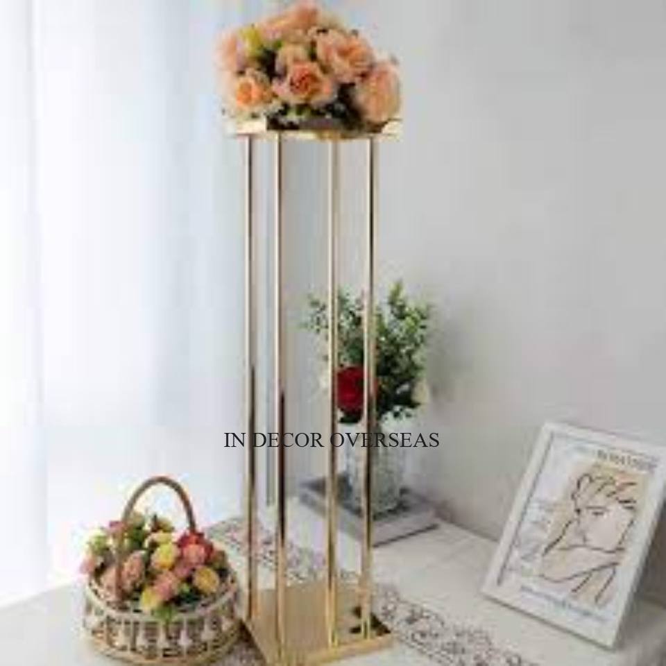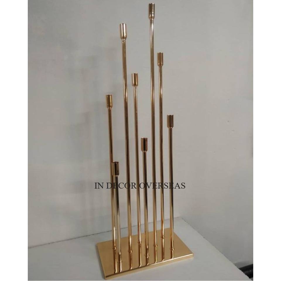 เครื่องประดับชิ้นกลางโต๊ะสำหรับงานแต่งงานทำจากโลหะชุบทองดีไซน์เนอร์เป็นจำนวนมาก