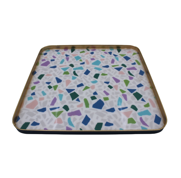 ถาดรองจานและจานทำด้วยมือถาดเหล็กทรงสี่เหลี่ยมสำหรับงานออกแบบเสิร์ฟทำจากทองเหลือง