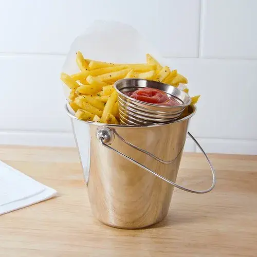 ถังใส่อาหารสแตนเลสขนาดเล็กพร้อมที่จับสำหรับเฟรนช์ฟรายส์ขนมขนมหวานร้านอาหารของโรงแรม