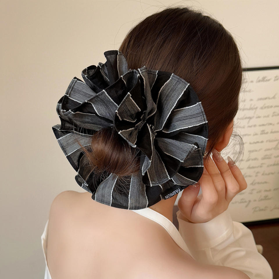 ยางรัดผมแบบหนา ลายทาง หลายชั้น ไซส์ XL ผ้าฝ้าย ยืดหยุ่น สำหรับผูกผม ลายตาราง ลายดอกไม้ ขายส่งจำนวนมาก
