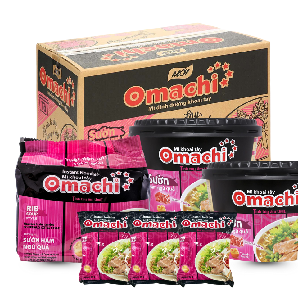 บะหมี่กึ่งสำเร็จรูป Omachi ซี่โครงหมูตุ๋นและผลไม้ห้าชิ้น