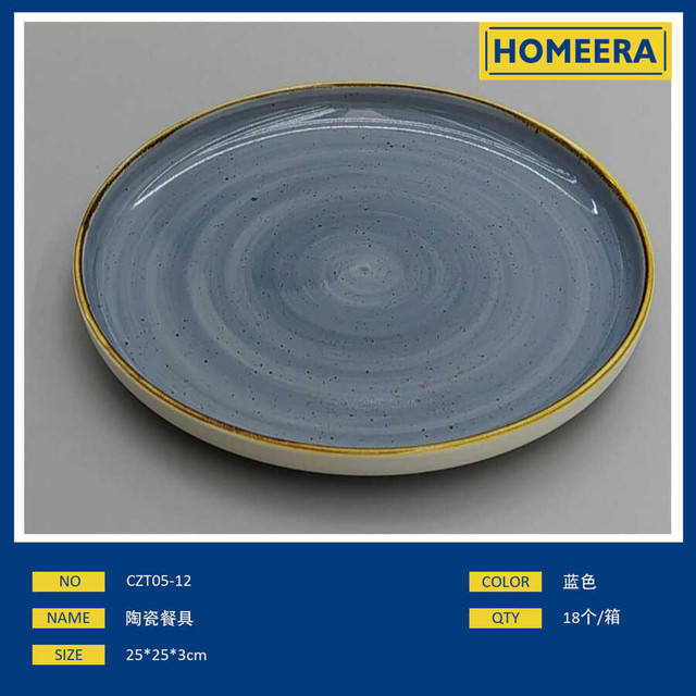 Wholesale Bulk Supplier of 10 Inch Blue Porcelain Dinner Plate Customizable Pattern Durable Clay Material 25x25x3cm 773g
