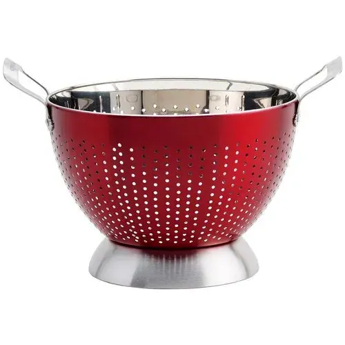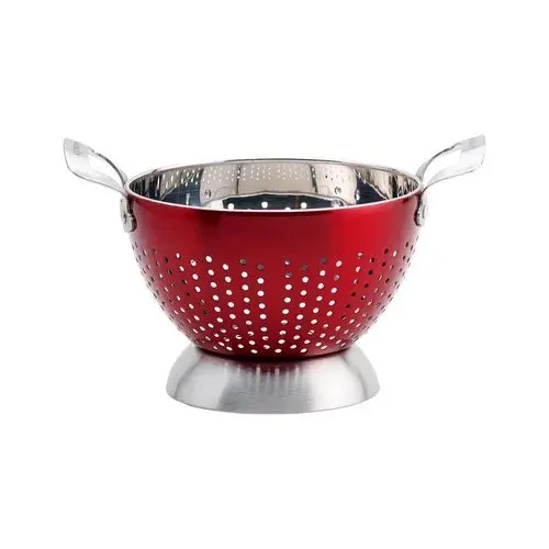 ชุดกระชอนสแตนเลสสีแดงพร้อมที่จับ2อันสำหรับระบายน้ำพาสต้าล้างผลไม้