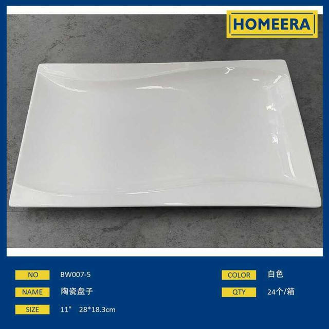 Wholesale Bulk Supply Set of 24 Classic Design 8 Inch Ceramic Rectangular Plate Porcelain Dishwasher Safe for Party Occasions