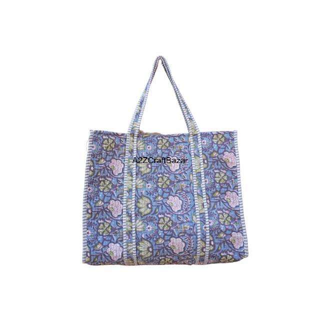 Wholesale Bulk Women's Vintage Style Quilted Cotton Large Tote Bag Long Pocket Striped Block Print Zipper Shoulder Strap Closure