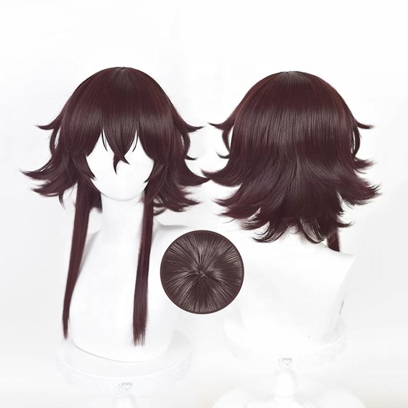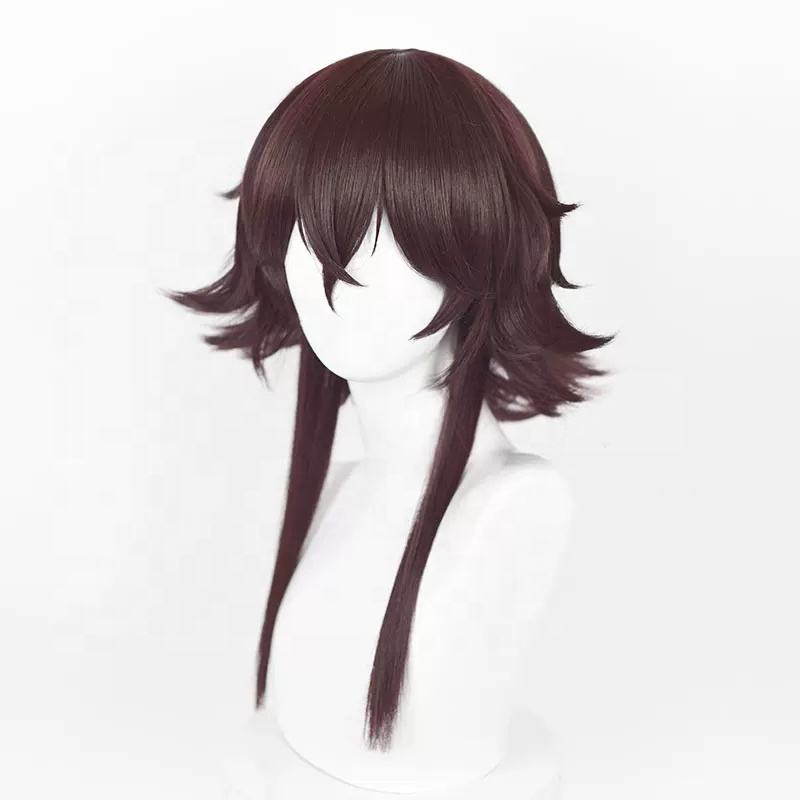 Bungo วิกผมสุนัขหลงทาง tetchou Suehiro ยาว50ซม. อะนิเมะสังเคราะห์สีน้ำตาลสีแดงทนความร้อน
