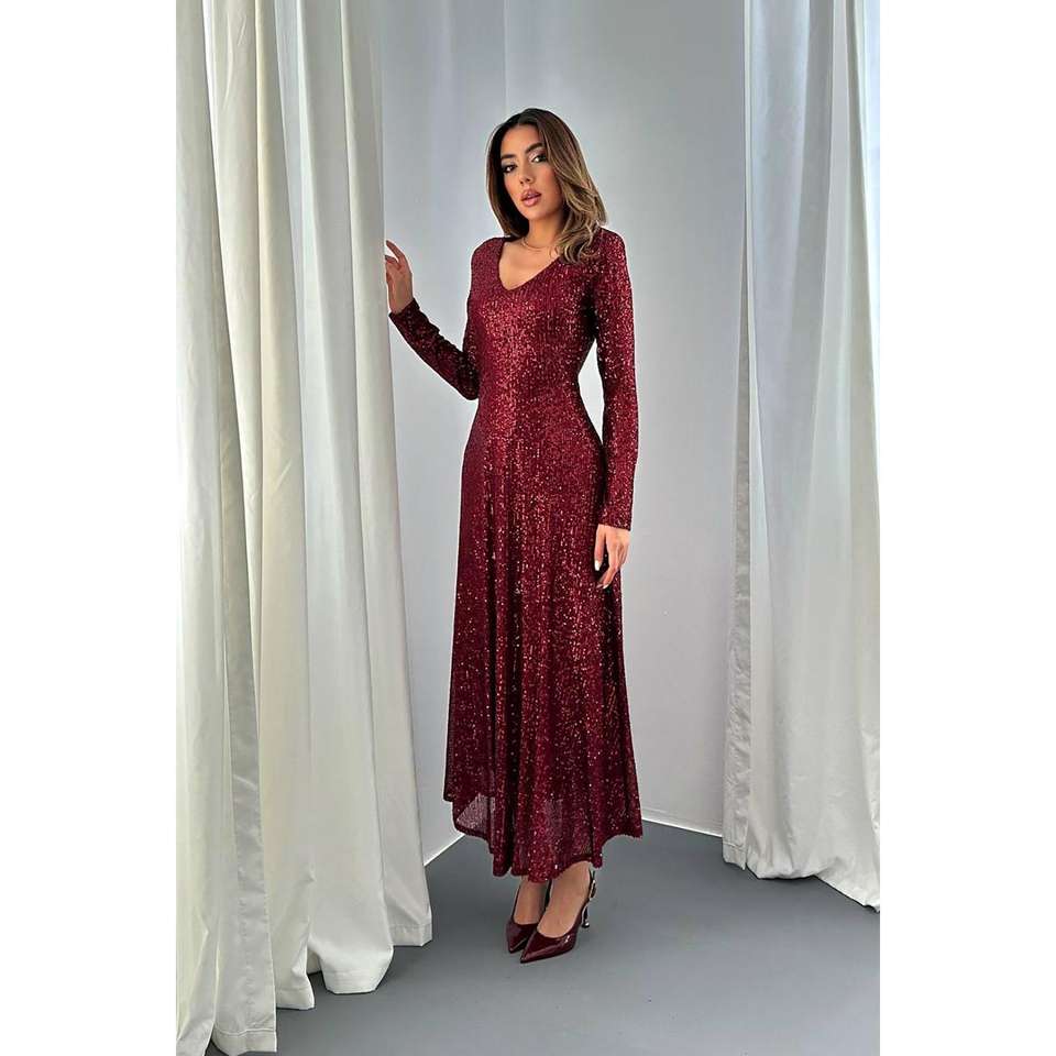 ชุดเดรสปักเลื่อมสีเบอร์กันดีแบบเปิดหลัง ยาวกรอมพื้น ทรงเอ็มไพร์ ไซส์ XS แขนสั้น ระบายชั้นๆ ประดับกลิตเตอร์ สำหรับงานเลี้ยงตอนเย็น ขายส่ง