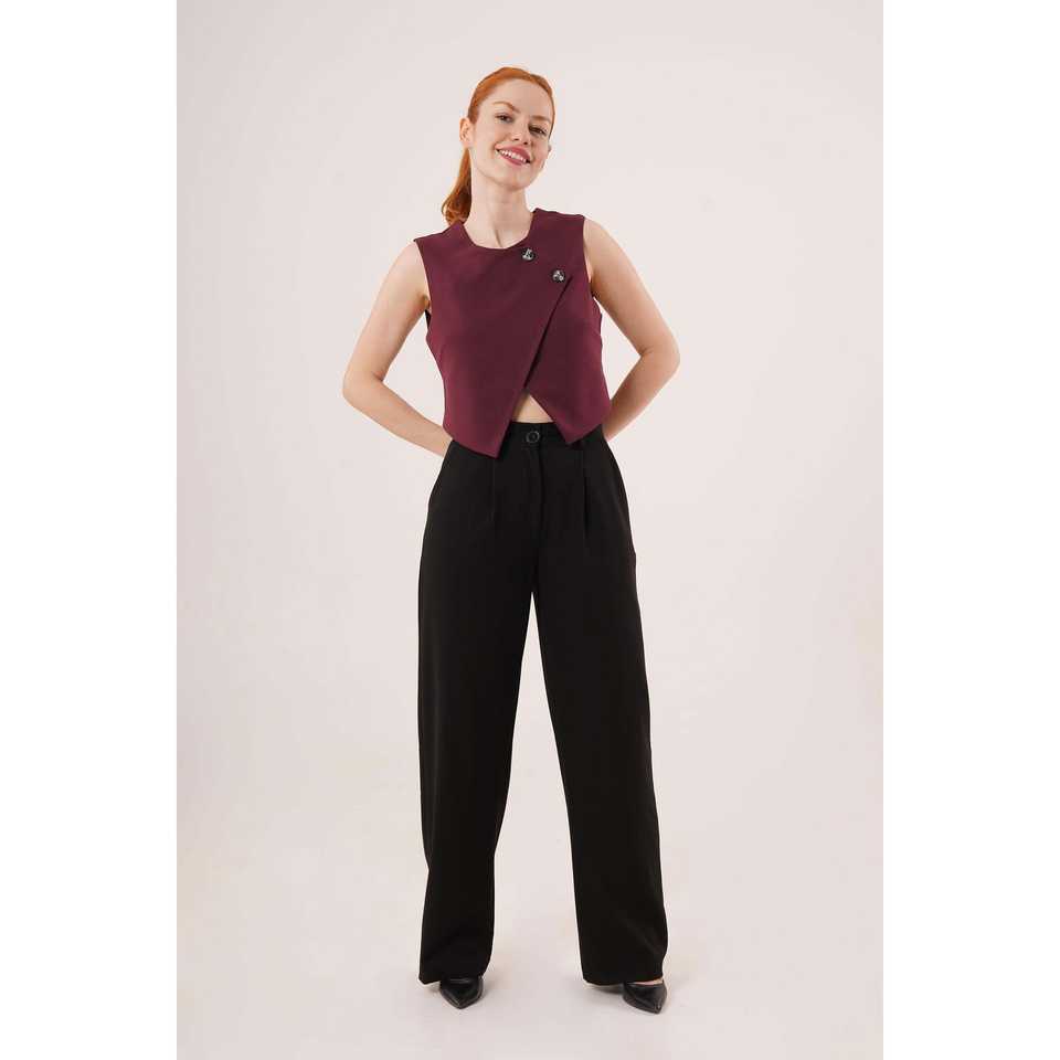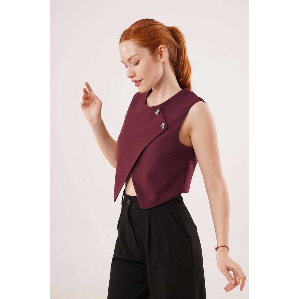เสื้อกั๊กผู้หญิงทรงยาวแบบไขว้ติดกระดุมสองแถว สีเบอร์กันดี สไตล์เรโทร ปักลาย เหมาะสำหรับฤดูใบไม้ร่วงและฤดูหนาว ขายส่ง