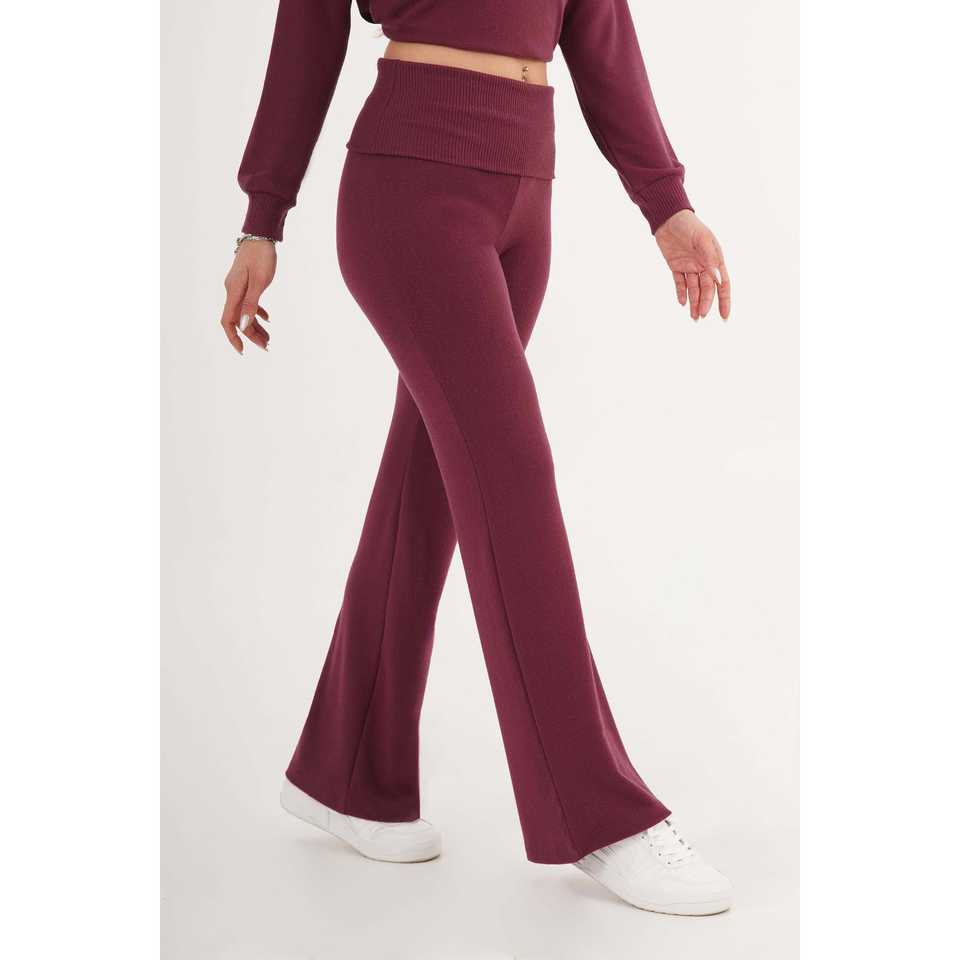กางเกงทรงบานสีเบอร์กันดีขายส่ง พร้อมขอบเอวยางยืดแบบริบ ผ้าทอระบายอากาศ สไตล์ลำลอง สำหรับฤดูใบไม้ร่วง ไซส์ XL