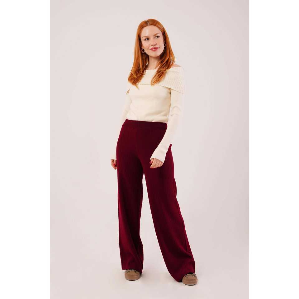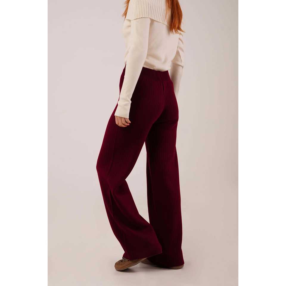 กางเกงขายาวถักสีเบอร์กันดีแบบขายส่ง เอวสูง ขอบเอวยางยืด ระบายอากาศได้ดี ทรงขากว้าง