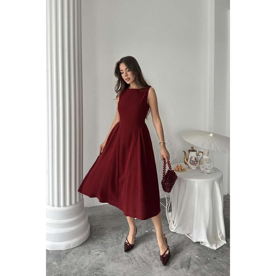 ชุดราตรีผ้าลินินสีเบอร์กันดีความยาวปานกลางแบบขายส่ง พร้อมดีไซน์จับจีบด้านข้าง