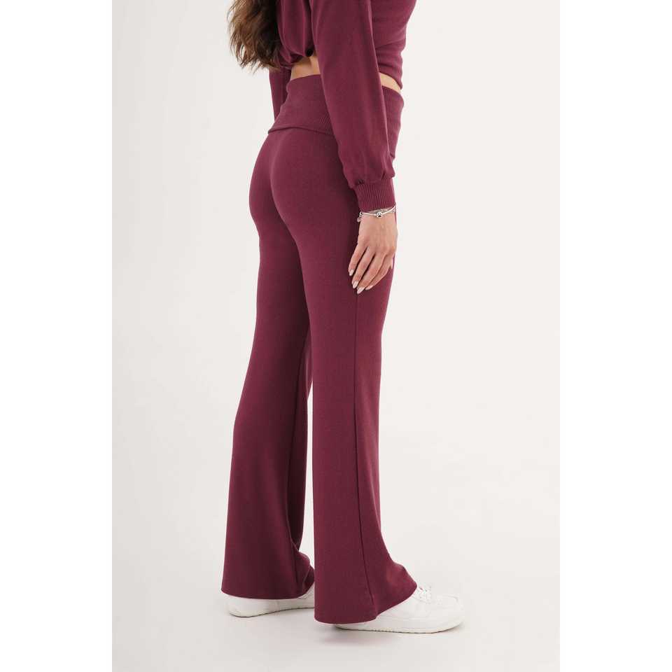 กางเกงขายส่งสีเบอร์กันดีสำหรับผู้หญิง สไตล์ลำลอง ผ้าคอร์ดูรอย ระบายอากาศได้ดี พร้อมขอบเอวแบบริบ ทรงเอวกลาง แบบคาร์โก้