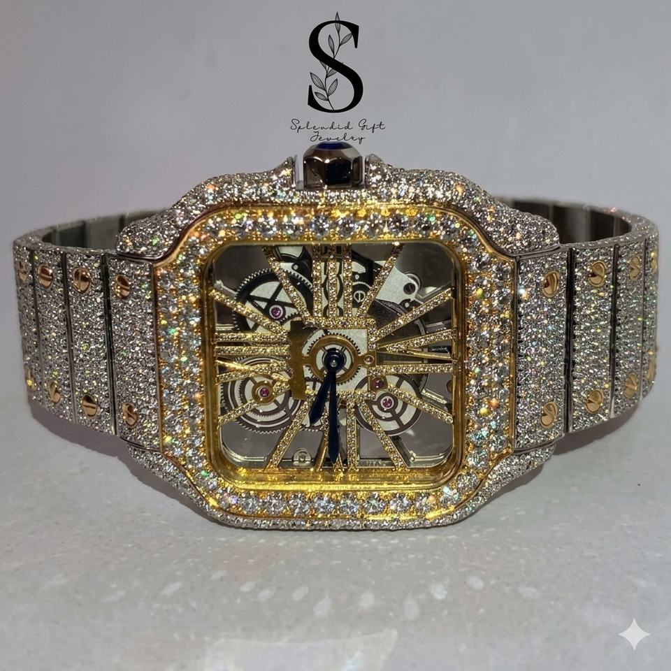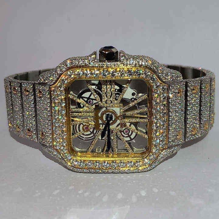 นาฬิกาข้อมืออัตโนมัติแบบกลไกประดับเพชรโมอิสซาไนต์สุดหรูหราสไตล์ฮิปฮอปสำหรับผู้ชาย ขายส่ง
