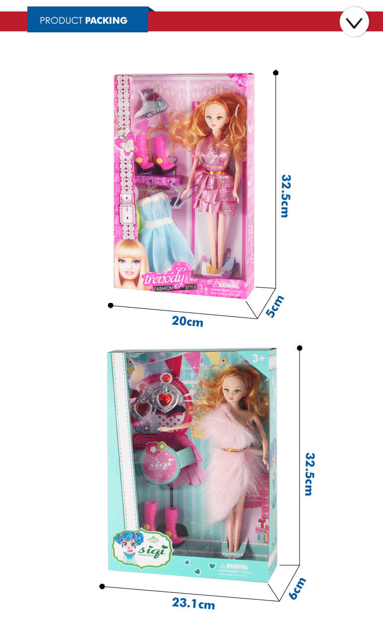 หน้าต่างกล่องสำหรับขายส่งใหม่สไตล์สาวฝันตุ๊กตาพลาสติกที่มีอุปกรณ์เสริมชุด