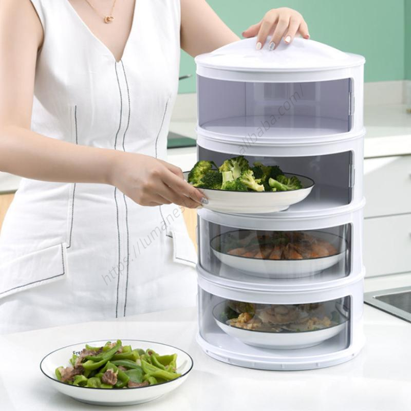 ฝาครอบจานอาหารแบบหลายชั้น C89 ป้องกันฝุ่น สำหรับเก็บอาหารเหลือ พับได้ เก็บรักษาความสด สำหรับโต๊ะอาหาร